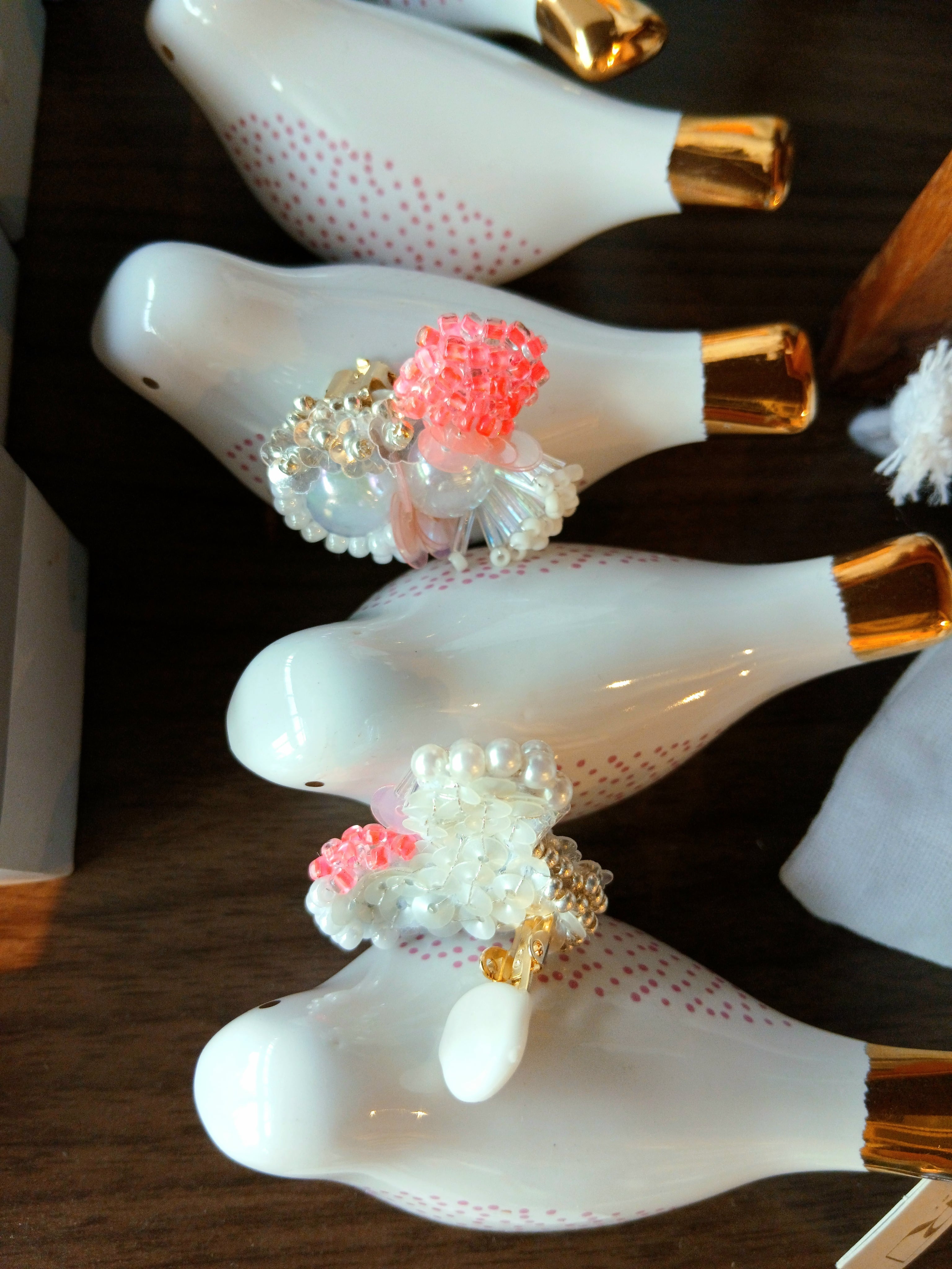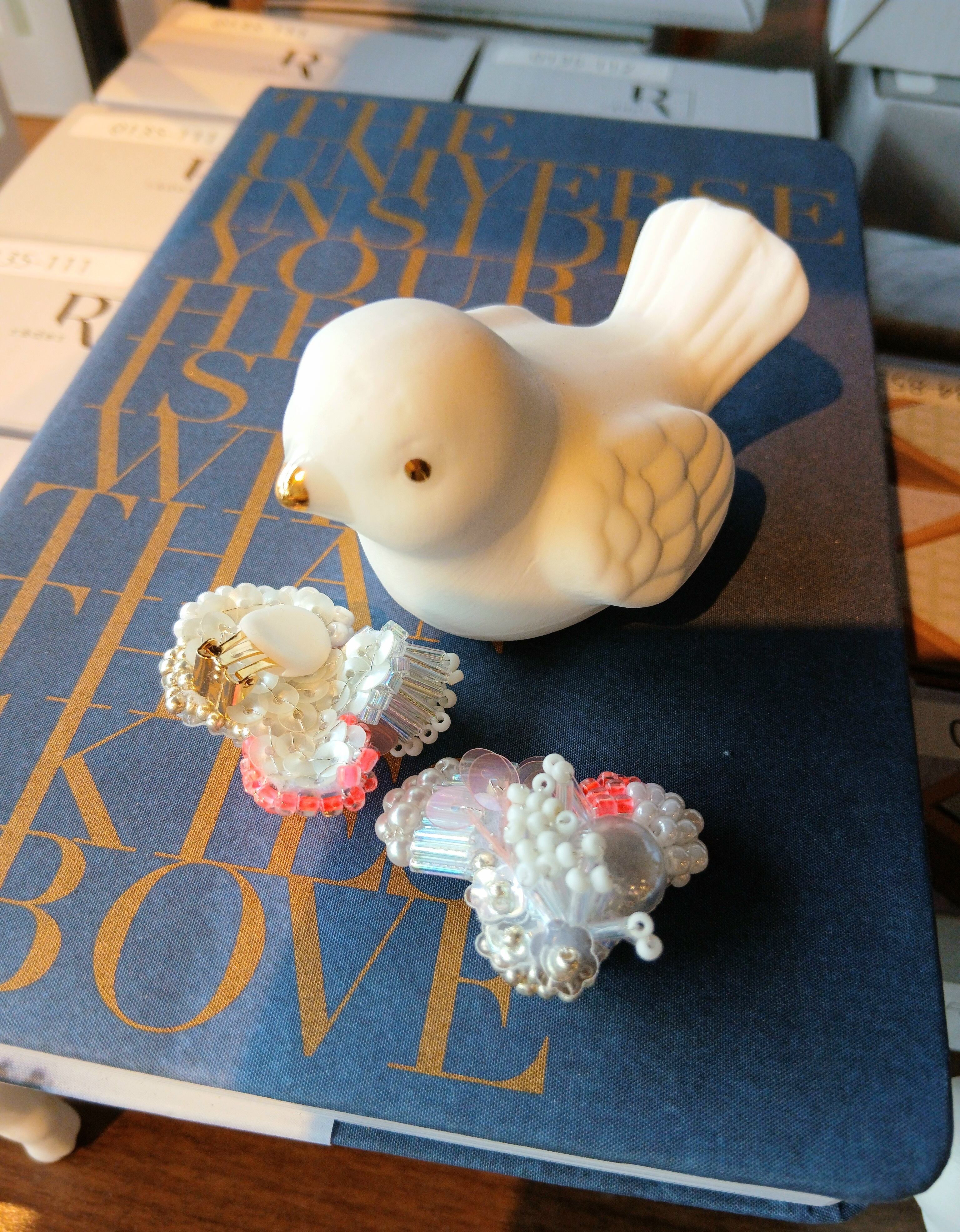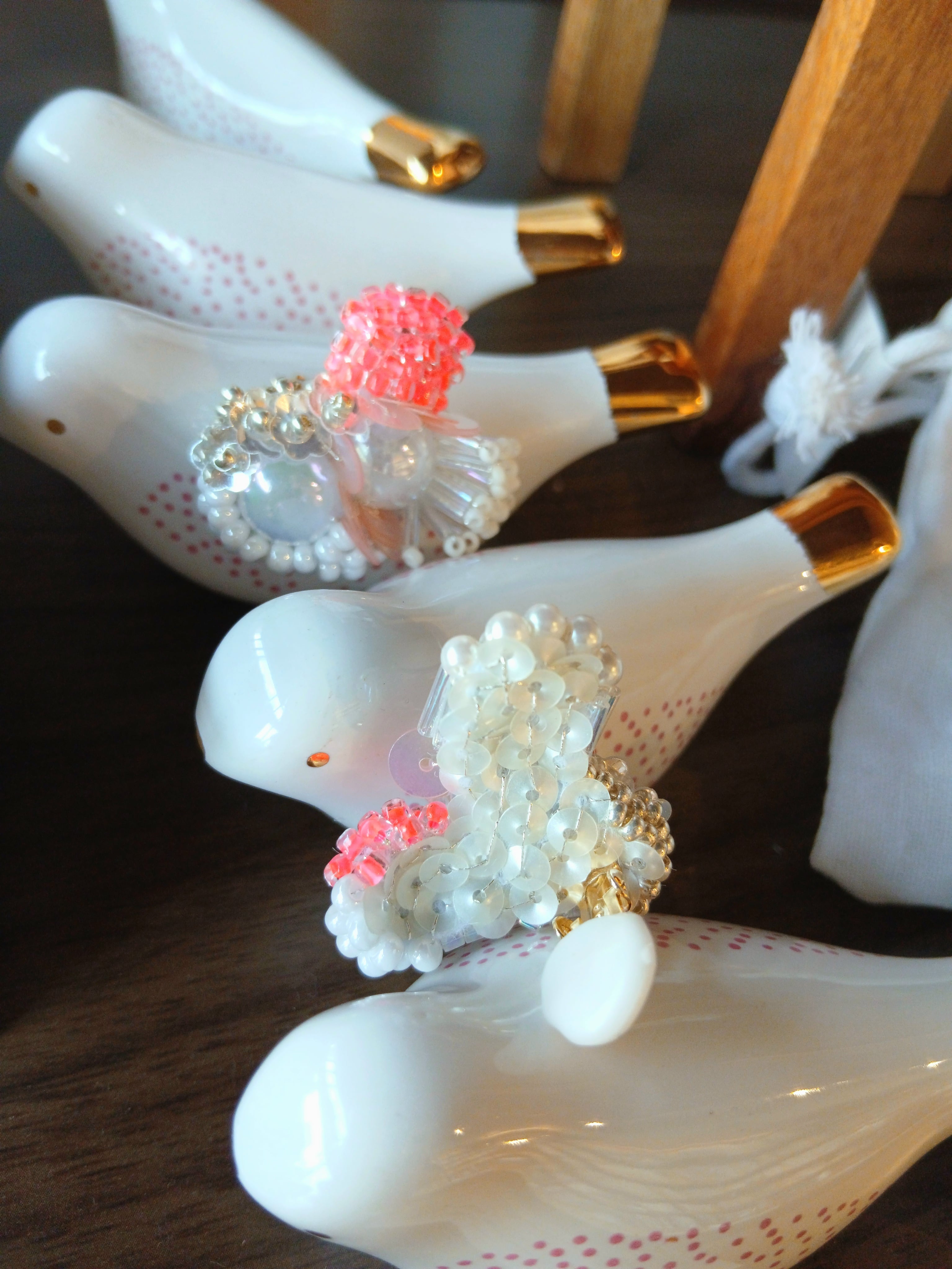 スパンコールの光沢とビーズが織り成す色合いがまるで珊瑚のような美しさ。裏面にもスパンコールが散りばめられています。