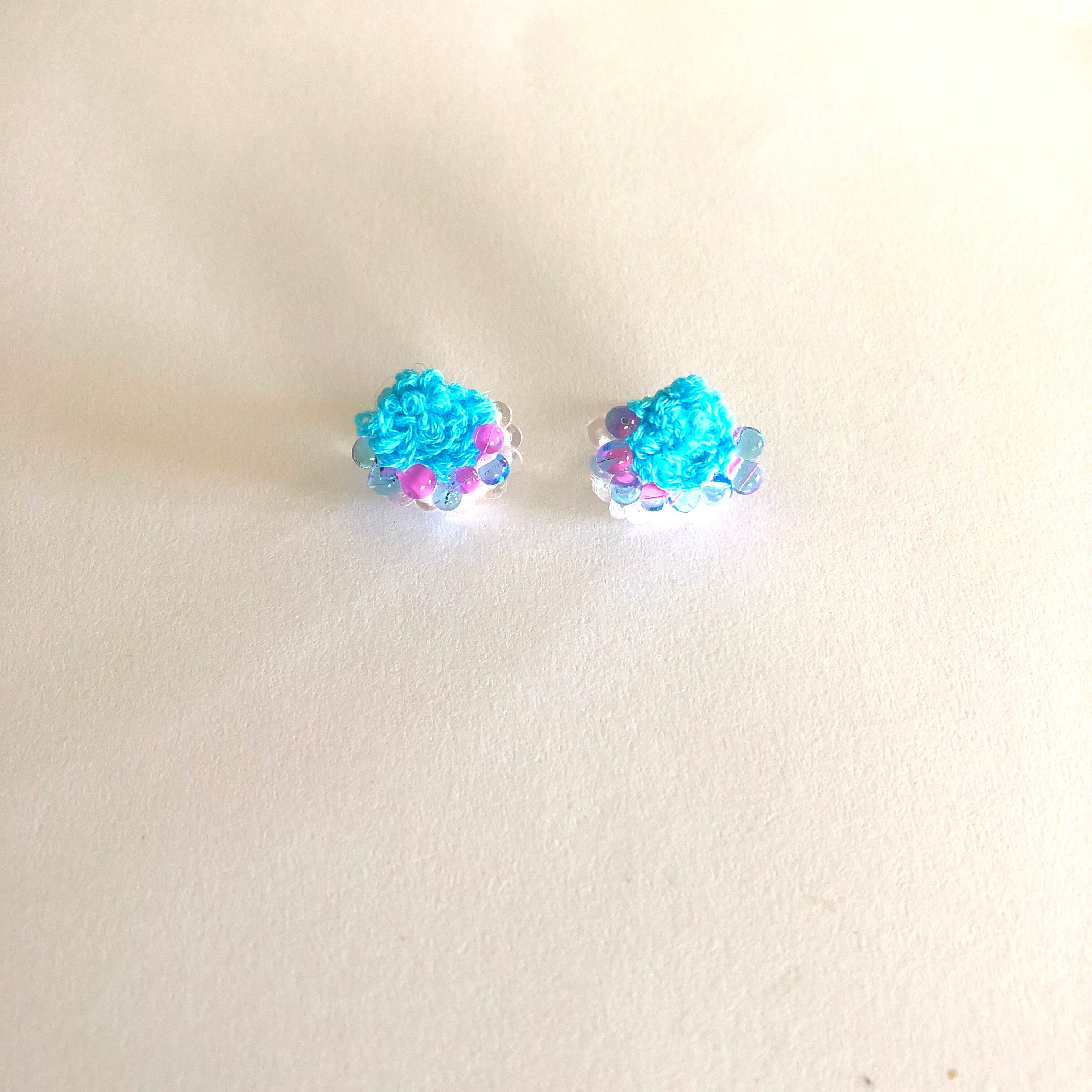 ループ状になっているブルーの刺繍をメインに、ビーズとスパンコールをあしらったデザイン。