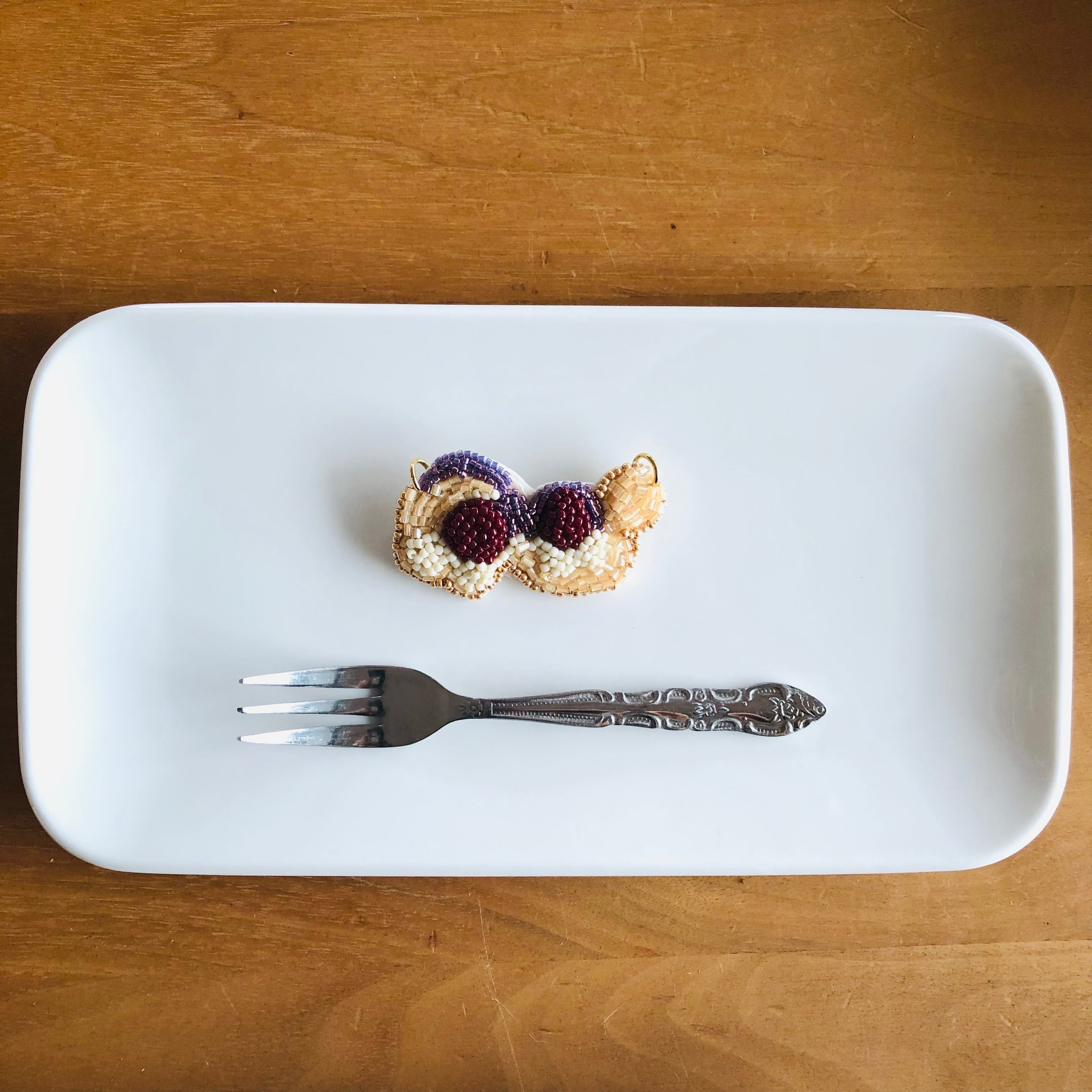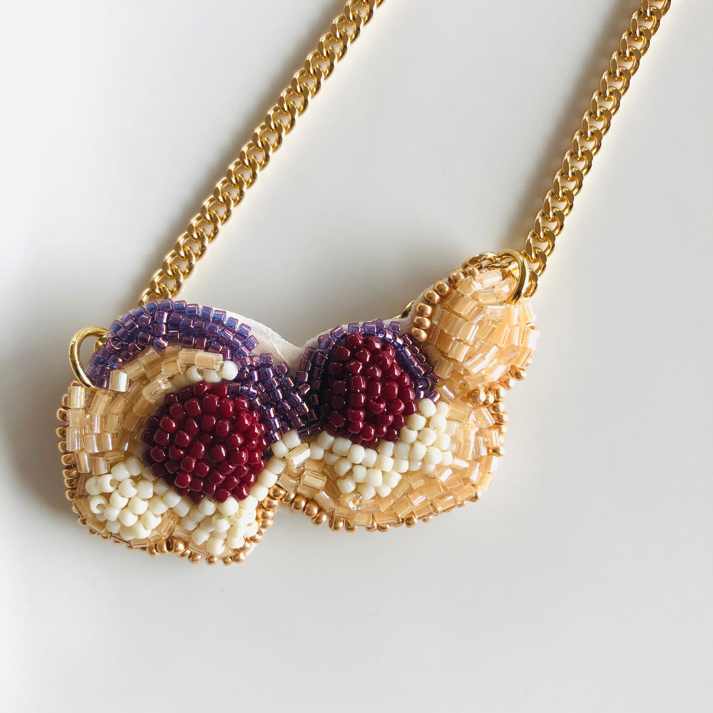 リュネビル刺繍ネックレス/ブローチ ラズベリー